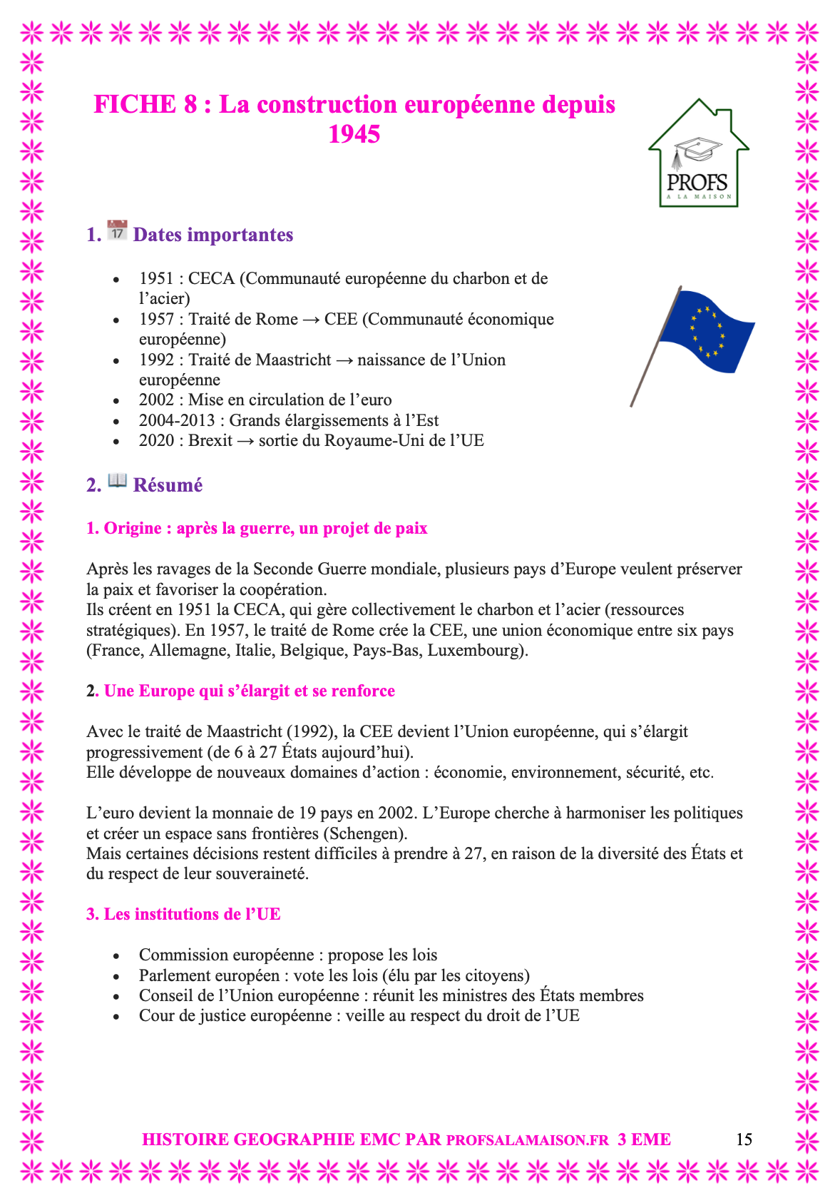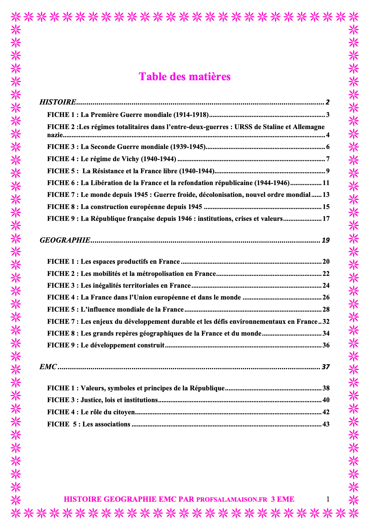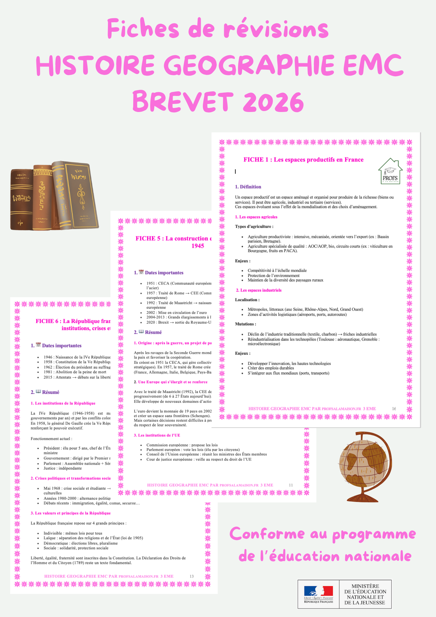 - 23 fiches ultra-claires couvrant l’intégralité du programme d’Histoire, de Géographie et d’EMC de 3 eme