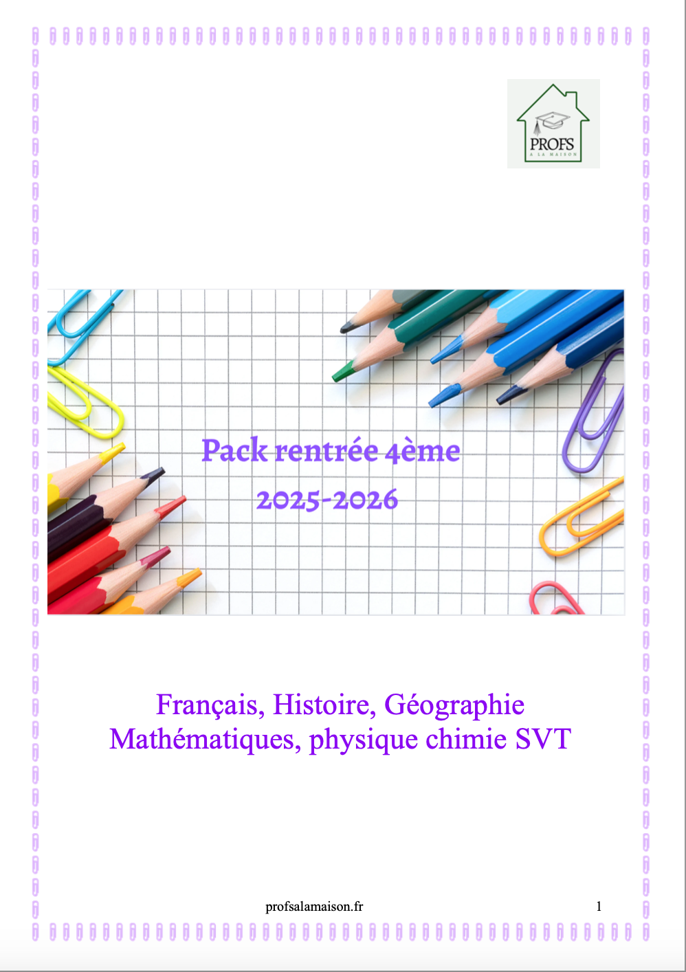 La classe de 4e est une étape clé du collège : les notions deviennent plus complexes, le rythme s’accélère, et l’autonomie devient essentielle. Ce Pack Rentrée 4e a été conçu pour aider les élèves à faire le lien entre la 5e et la 4e, tout en posant de bonnes bases de travail dès les premières semaines.